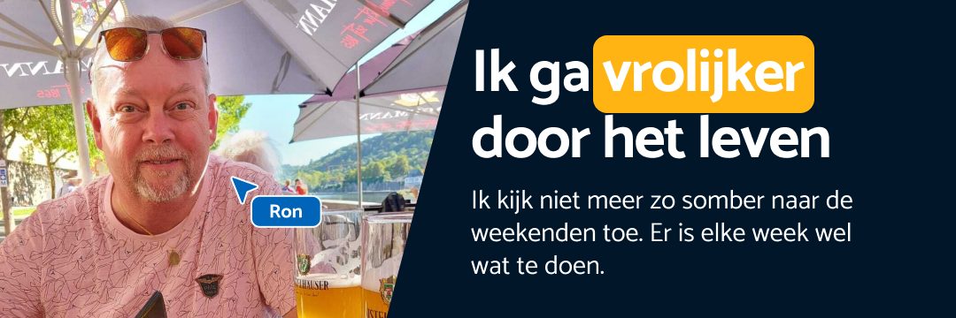 Ron heeft niet alleen activiteiten gevonden, maar vooral vriendschap. “Absoluut heb ik nieuwe vrienden gekregen. Hele goede vrienden zelfs. Mensen die er gewoon voor je zijn als je even in je put zit. We gaan ook buiten Klup met elkaar om. Dat is een groepje van een man of acht, negen.”