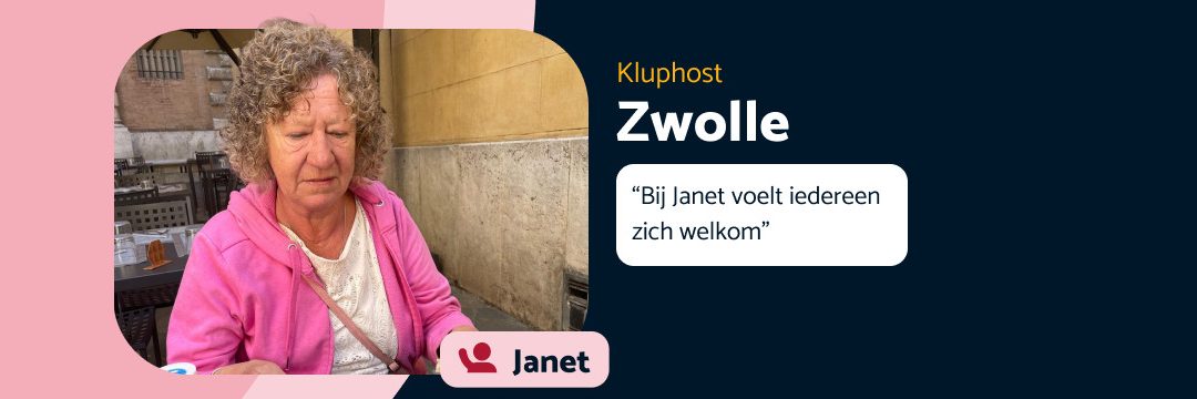 Janet weet precies wat ze andere Kluppers wil meegeven. “Ik hoop mensen wegwijs te maken op het platform en ze enthousiast te maken over wat Klup te bieden heeft.” Haar tip voor nieuwkomers? “Ga gewoon deelnemen aan activiteiten in je eigen omgeving. Organiseren kun je leren maar het hoeft ook niet. Niet iedereen wil dat, en dat is prima.”
