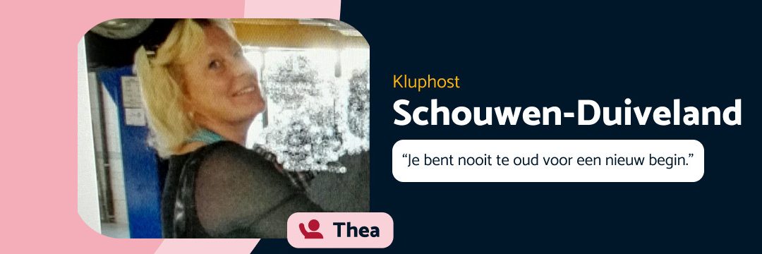 Iedereen mag me om tips vragen,” zegt ze. En ze meent het. Want dat is wat Klup voor Thea betekent: nieuwe mensen ontmoeten, samen leuke dingen doen, en vooral: niemand aan de kant laten staan.